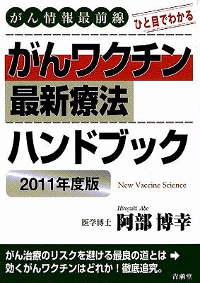 2011年2月刊 2011年度版 がんワクチン最新療法ハンドブック 医学博士 阿部博幸 著 がん治療(抗ガン剤、放射線、手術)の リスクを避けるために、効くワクチンを徹底追究! “樹状細胞がんワクチン療法”ほか、 最新ワクチン療法のメカニズムと臨床成果を明かす。 1,260円(税込) 978-4-921192-69-3