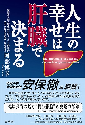 2007年6月刊 人生の幸せは肝臓で決まる 阿部博幸 著 新潟大学安保徹氏絶賛! 今肝臓で悩んでいる人、病気知らずの元気な体を作りたい人必見。人生最大の敵、C型肝炎、B型肝炎、肝硬変…ウィルス値ゼロへの新医学常識。 1,365円(税込) 978-4-921192-45-7